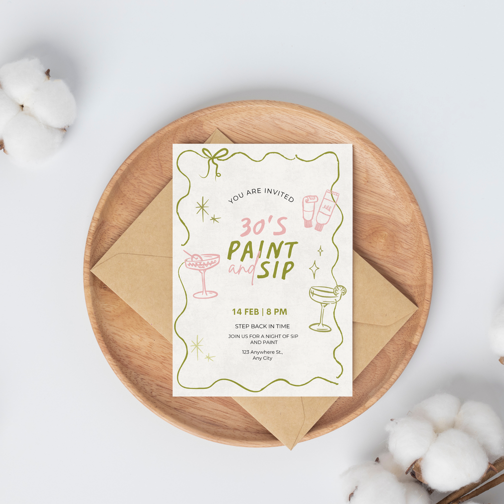 5x7 Sip & Paint Invitation: This template is an instant download that is editable on Canva and can be printed or used digitally.